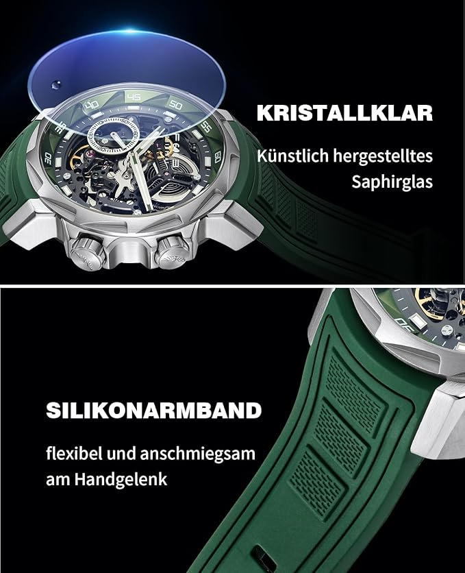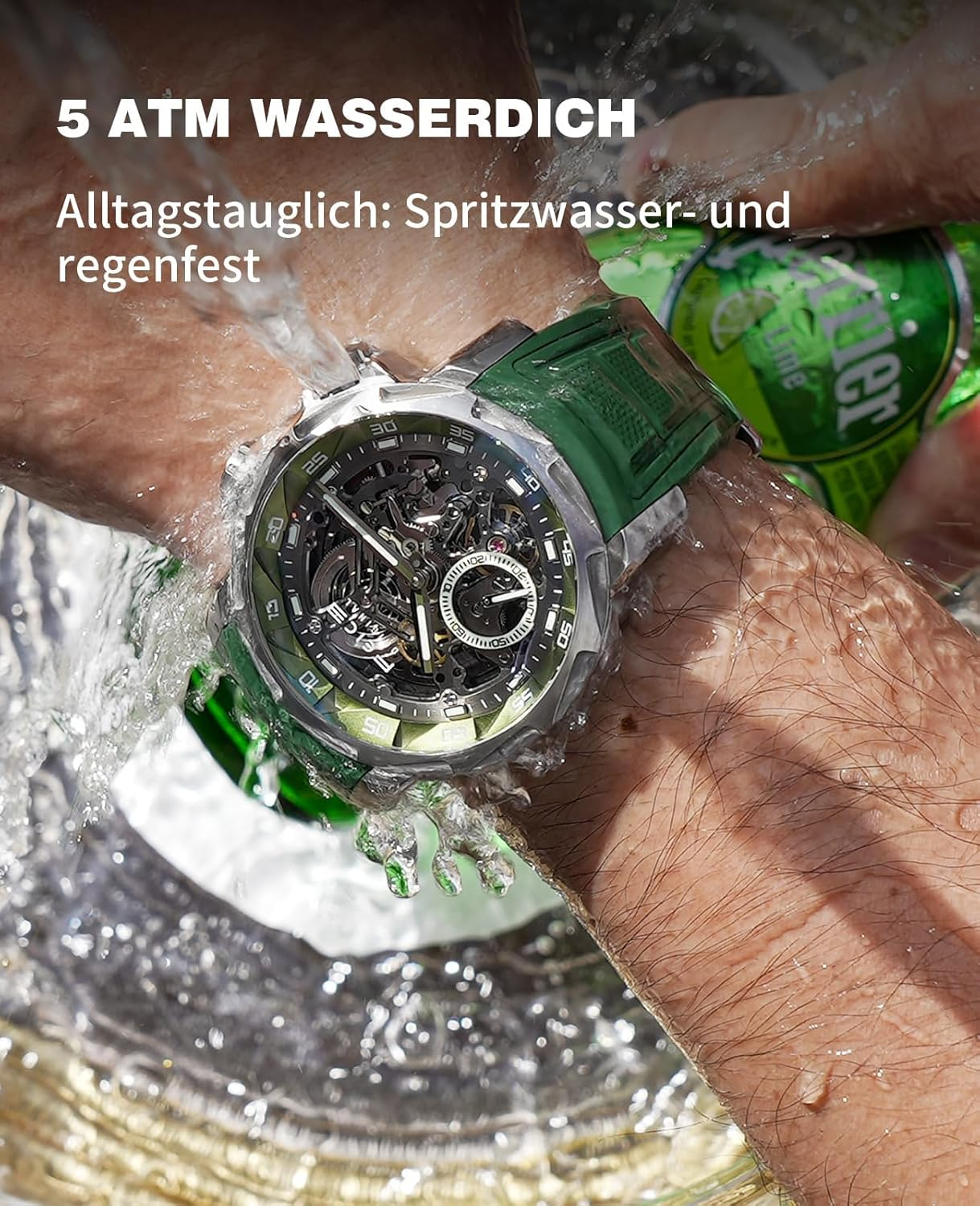 - Premium Materials – Waterproof & Temperature Resistant: Constructed from 316L austenitic titanium steel with corrosion resistance and heat resistance, plus a liquid silicone strap for comfort in all seasons and 5ATM waterproof for daily use.